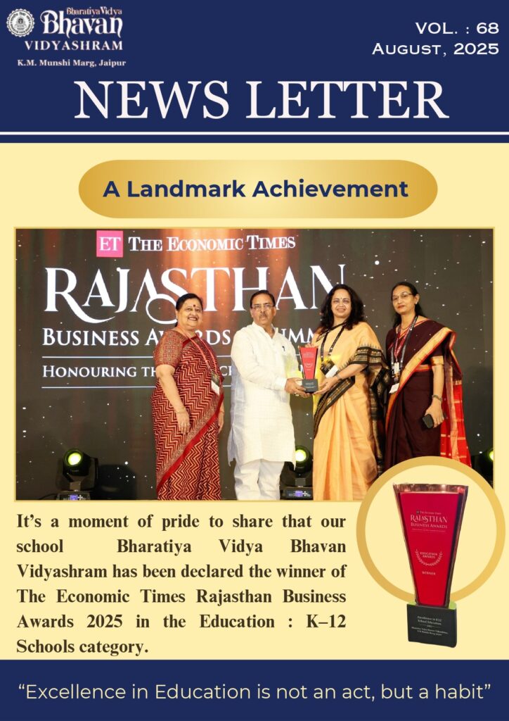 We are delighted to share that Bhartiya Vidya Bhavan Vidyashram, Jaipur, has been ranked Number 1 in the Times School Survey 2025 (Jaipur), conducted by the leading English-language national daily, The Times of India.